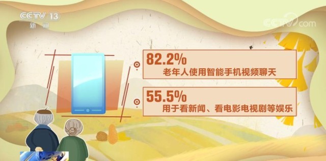 數字化對老年人生活的影響將激增。65—69歲老人使用智能手機的占比超過五成。百歲及以上老人仍有1.3%使用智能手機。82.2%老年人使用智能手機視頻聊天,55.5%用于看新聞、看電影、電視劇等娛樂。