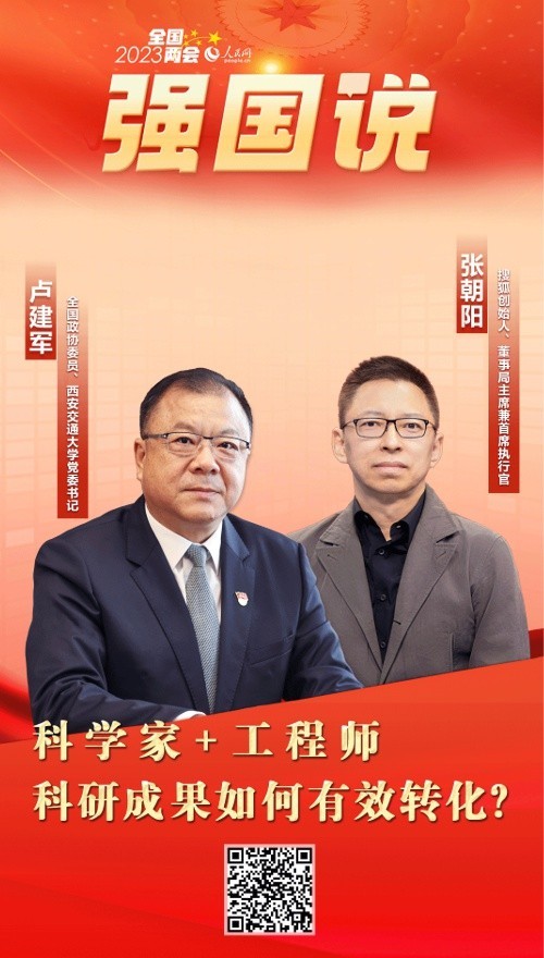 產學研深度融合,不僅是提高科技成果轉化與產業化水平的具體路徑之一,也是培養科技創新人才的關鍵手段。2023年全國兩會期間,全國政協委員、西安交通大學黨委書記盧建軍,搜狐創始人、董事局主席兼首席執行官張朝陽做客人民網《強國說》欄目,就產學研深度融合相關話題展開對話。
