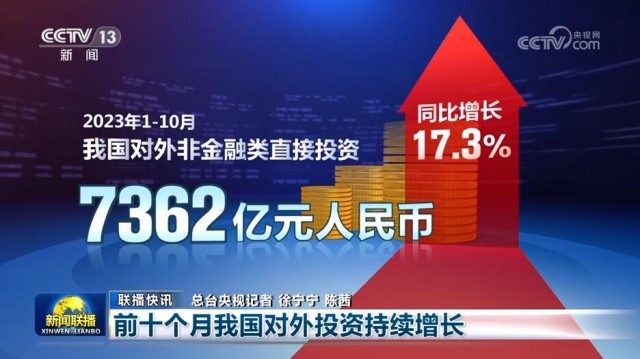 商務部今天公布的最新數據顯示,今年前十個月,我國對外投資數據持續增長。1—10月,我國對外非金融類直接投資7362億元人民幣,同比增長17.3%;我國對外承包工程完成營業額8568.8億元人民幣,同比增長8.3%。