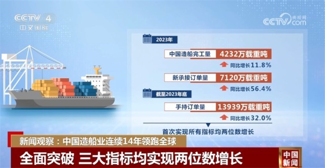 工業和信息化部1月15日發布的最新數據顯示,中國造船業三大指標連續14年位居世界第一,成為全球唯一一個三大指標實現全面增長的國家。2023年實現了船海產品全譜系總裝建造能力的新成就。新的一年,中國造船業加快多元化發展,將向機械化、綠色化、數字化轉型,向著更多船舶細分市場進軍。
