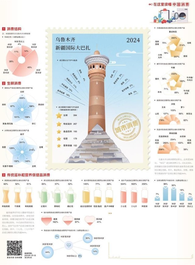 觀察、梳理和分析當地消費數據,可以看出,烏魯木齊消費市場持續(xù)升溫,特別是春節(jié)期間,消費潛能得到充分釋放,呈現飲食消費升級等新趨勢。