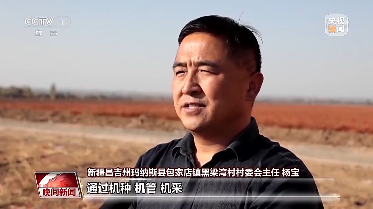 新疆昌吉州瑪納斯縣包家店鎮(zhèn)黑梁灣村村委會(huì)主任 楊寶:通過機(jī)種、機(jī)管、機(jī)采,目前產(chǎn)量在五百公斤左右,農(nóng)戶除掉開支,每畝地純收入在兩千元左右。(央視新聞客戶端)