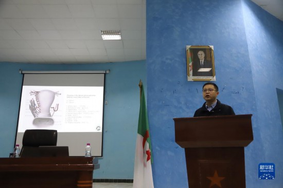 今年以來,援阿醫療隊塞提夫分隊負責人朱濤定期為當地住院醫生和醫學院學生舉辦學術講座。“講座目的是把我掌握的先進理念和技術傳遞給他們,在‘授人以魚’的同時‘授人以漁’,真正為阿爾及利亞留下一支‘帶不走的醫療隊’。”