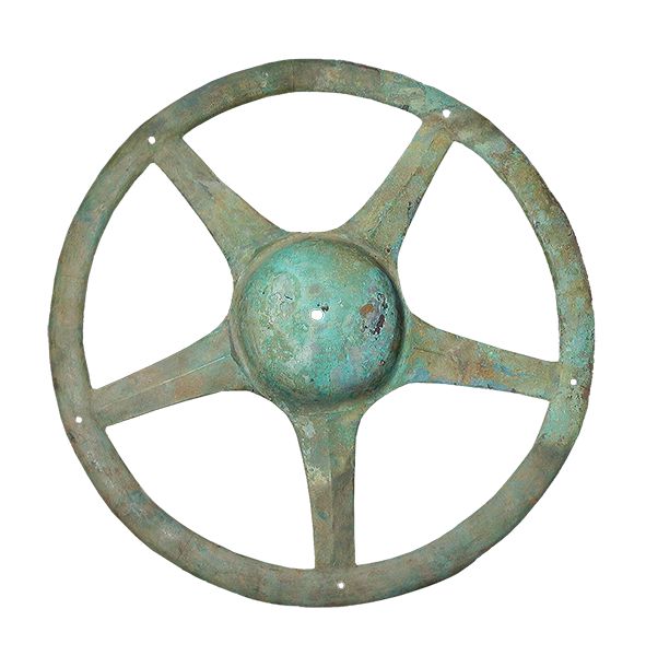 三星堆出土文物中,青銅太陽輪形似如今的“方向盤”,其用途引來了種種猜測:有研究者認為這是車輪,還有觀點認為是用于軍事作戰的盾牌上的盾飾。多數意見認為,這種形制的器物應即是“太陽形器”。它是常設在古蜀國神廟中的神器,或用于祭祀儀式。
