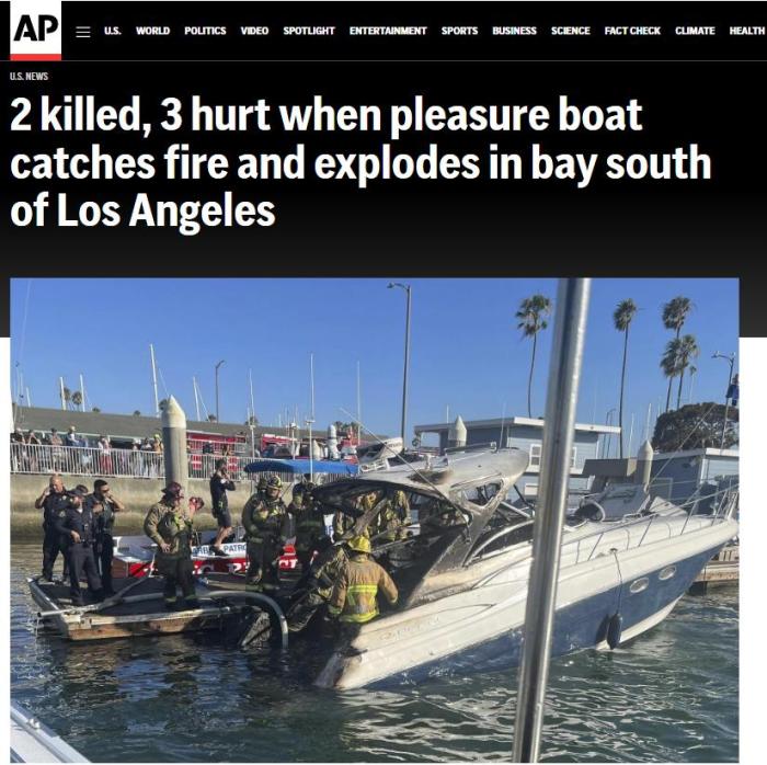 中新網8月7日電 據美聯社報道,美國加州長灘(Long Beach)發生一起游艇起火事故,造成2人死亡、3人受傷。