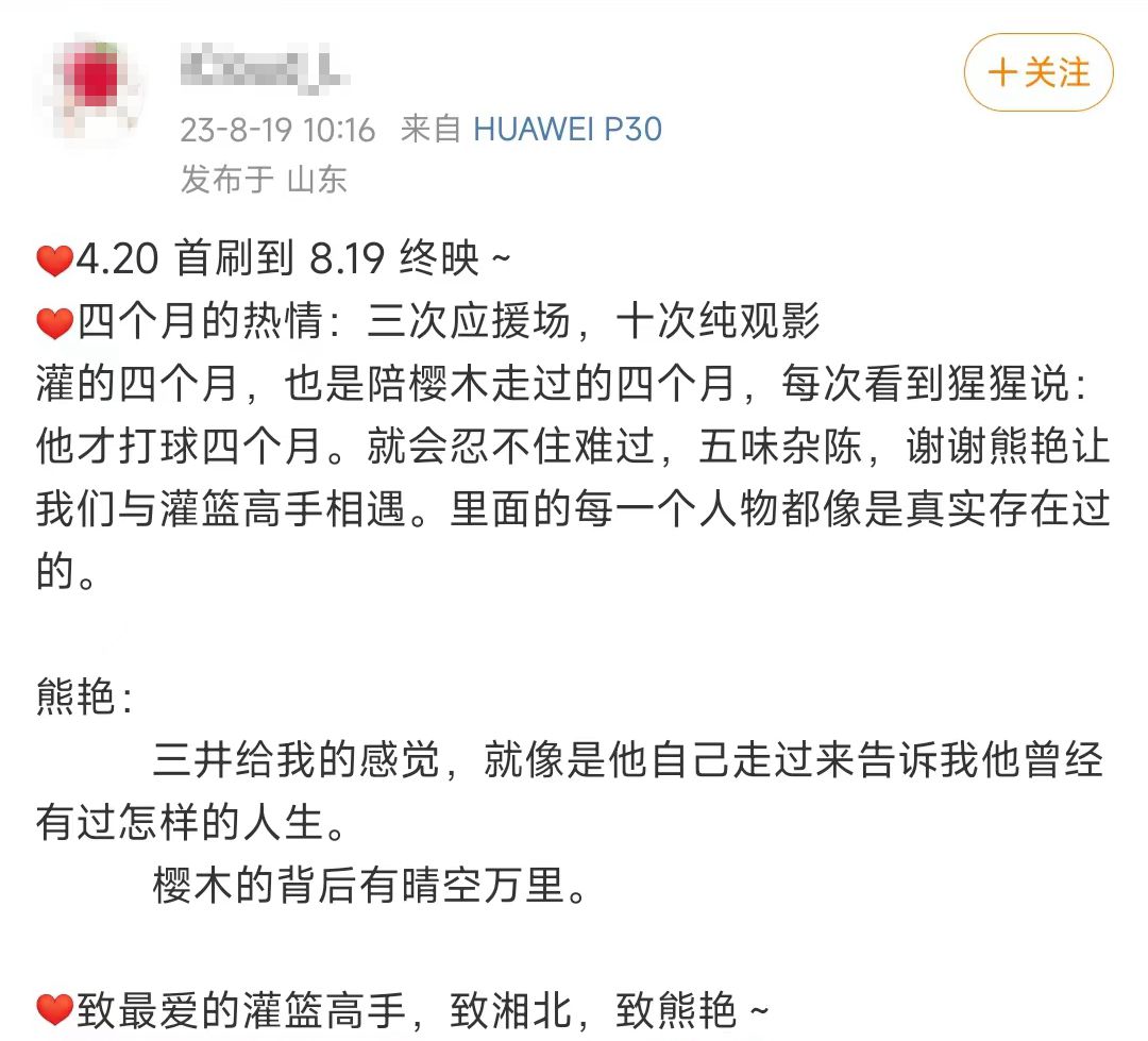 在《灌籃高手》電影終映日結束后,一位影迷留言道,“期待幾十年后重映,我們還是我們。”(完)