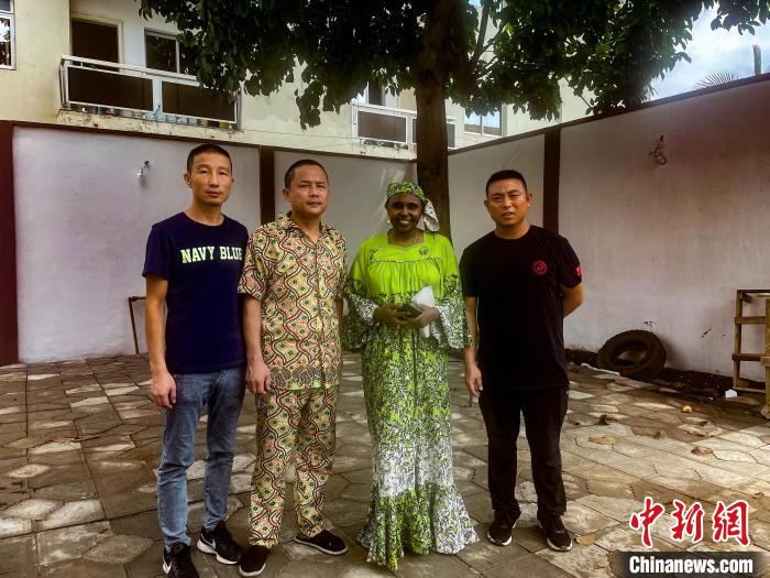 服務于山西援非醫療隊的廚師劉長東(左二)受邀為當地賓客提供有中國特色的餐點。山西援非醫療隊供圖