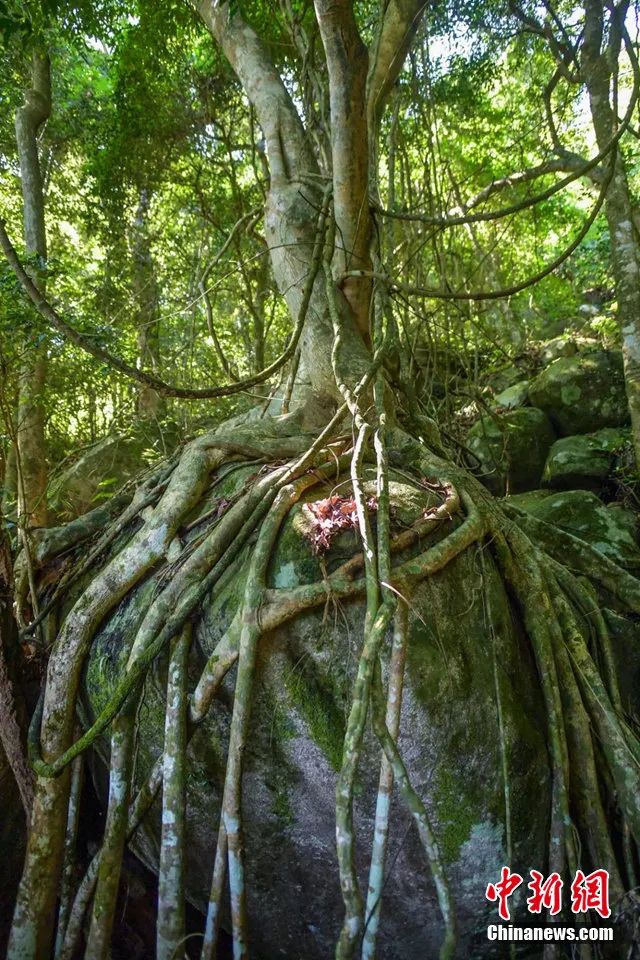 資料圖:熱帶雨林中拍攝的“根抱石”現象。駱云飛攝