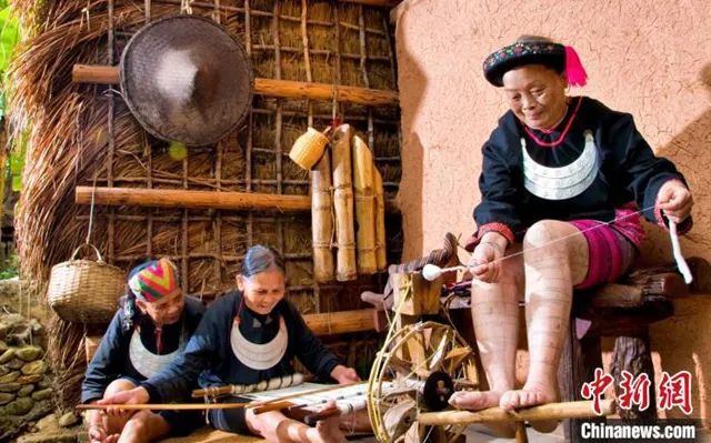 一邊織黎錦一邊開心地和游客互道“波隆”