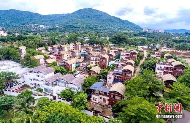 資料圖:保亭三道鎮黎族村莊什進村村民的房屋,屋頂造型源自黎族傳統民居船型屋。駱云飛 攝