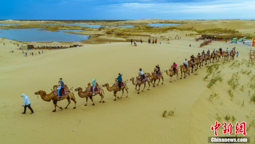 新疆國際大巴扎景區,游客在地方特色建筑前參觀游覽。劉新 攝