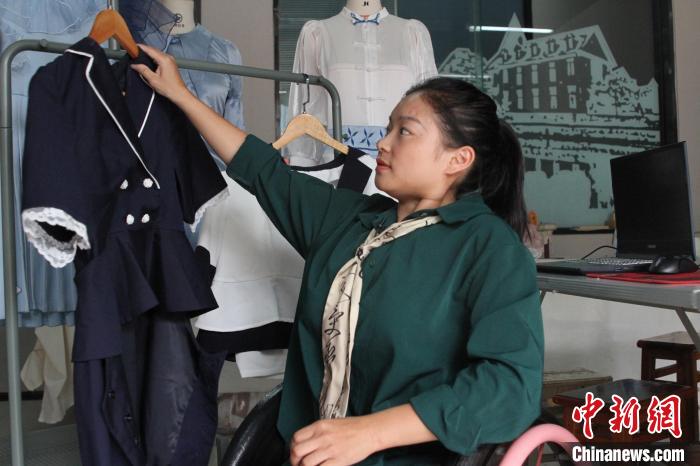 9月7日,成都紡織高等專科學校內,“輪椅女孩”張曉麗展示設計的無障礙服裝。王利文 攝