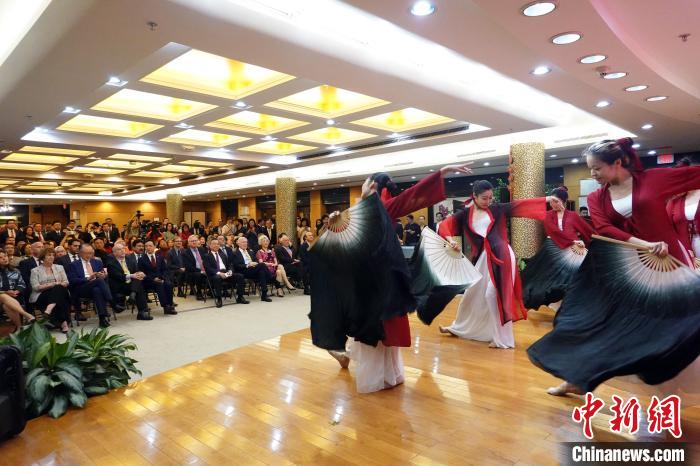 在招待會現場,古典舞蹈《書簡舞》、琵琶演奏的維吾爾族傳統民歌《送我一只玫瑰花》、鋼琴伴奏的美聲《月亮河》等文藝表演以及豐盛的中國美食受到歡迎。(完)