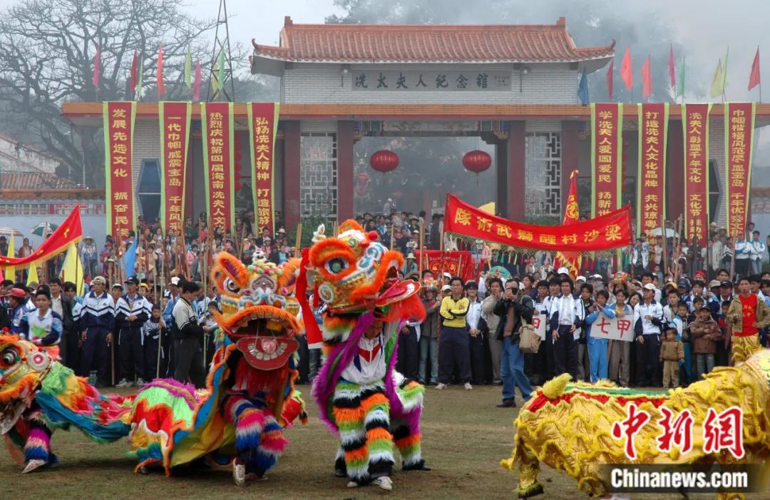 如今,海南島各地建有400多座規(guī)模不等的冼夫人廟。民眾自發(fā)組織緬懷冼夫人的祭祀信俗活動,經(jīng)過長期的歷史傳承、時代演變,逐漸發(fā)展成為了海南流傳最久、分布最廣、最隆重?zé)狒[的傳統(tǒng)民俗節(jié)日——“軍坡節(jié)”。2014年11月,基于海南軍坡節(jié)和廣東年例而形成的冼夫人信俗,被列入第四批國家級非物質(zhì)文化遺產(chǎn)名錄。
