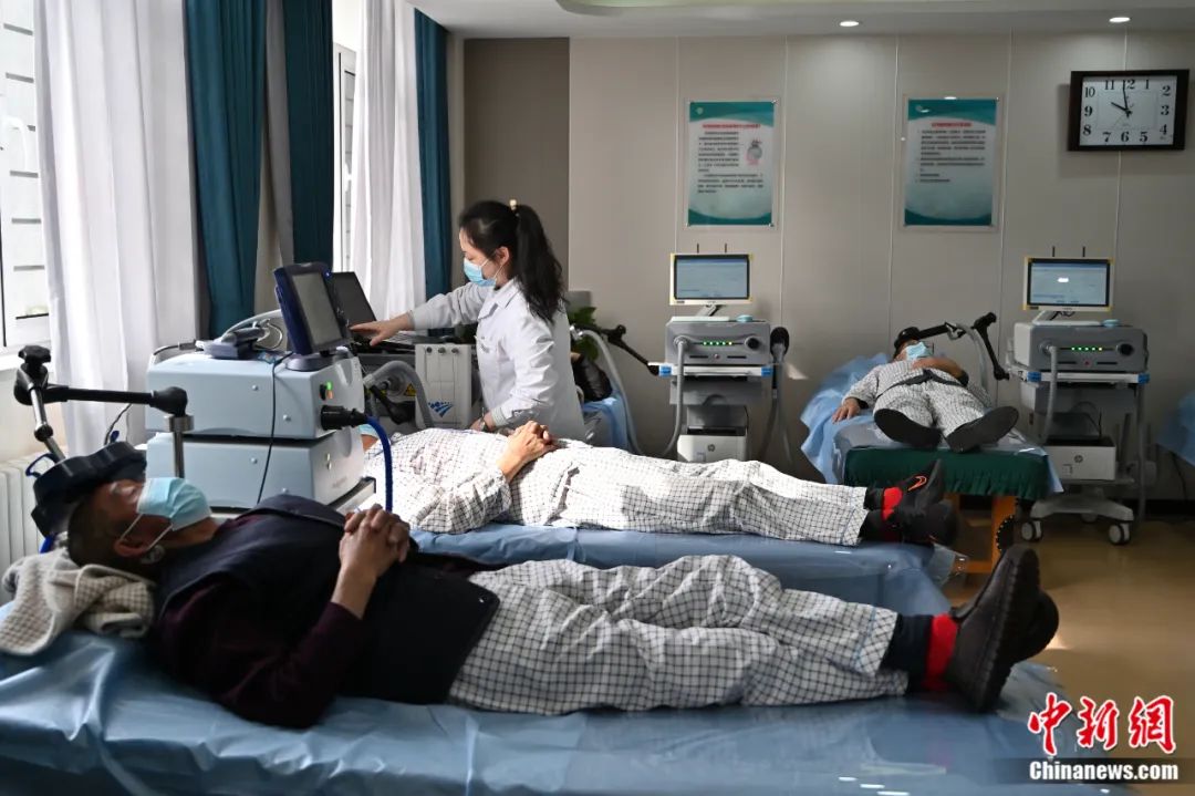 2023年3月21日,呼和浩特,患者在內蒙古自治區第三醫院睡眠醫學中心接受經顱磁刺激治療。劉文華 攝