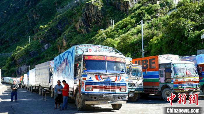 2018年7月26日,西藏自治區日喀則吉隆口岸,尼泊爾車輛排隊等待通關。(資料圖) 中新社記者 江飛波 攝