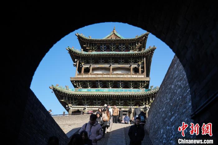 29日,“江山如畫”網(wǎng)上主題宣傳活動(dòng)(山西)采訪團(tuán)走進(jìn)平遙古城。中新社記者 武俊杰 攝