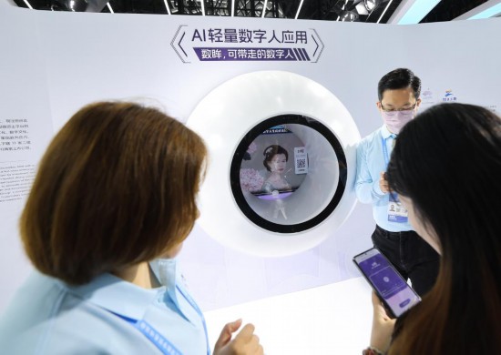 2023年11月23日,參觀者在第二屆全球數字貿易博覽會上體驗數字人應用。新華社記者徐昱攝