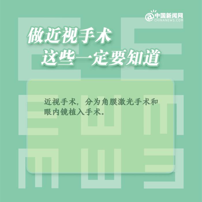 中新網2月4日電 ①近視手術,分為角膜激光手術和眼內鏡植入手術;②一般來說,近視手術的時間建議在18-50歲之間;③術后1個月內,避免異物進入眼睛,不要揉眼和劇烈運動;④術后仍應注意用眼衛生、飲食習慣、生活習慣等,要經常放眼遠眺。