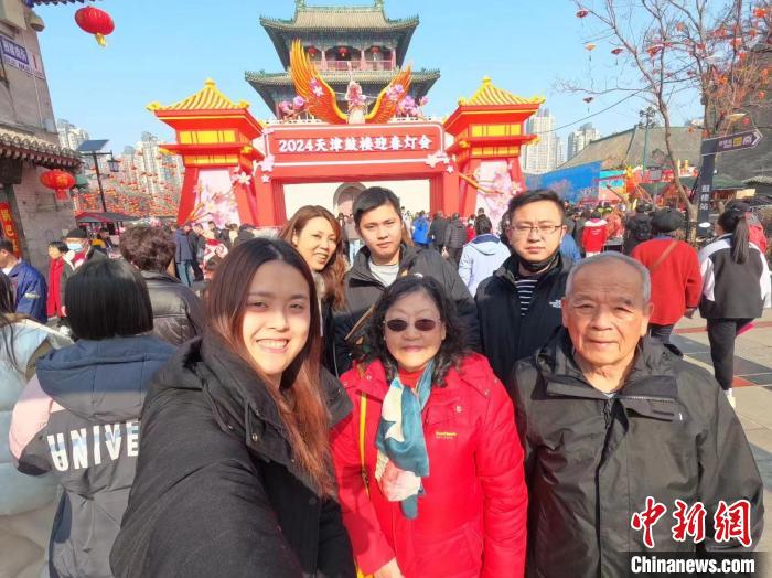 春節假期,施季萱一家到天津觀賞鼓樓迎春燈會。(受訪者供圖)