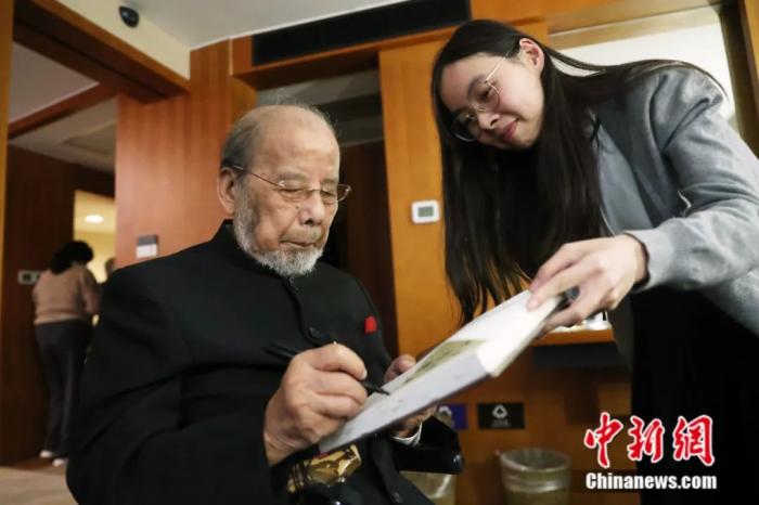 巨大的化妝鏡前,曹老手執拐杖,正安靜地坐在輪椅上沉思,化妝臺上放著好幾束鮮花。他向中新社記者感慨:“這些孩子們真不簡單!”“99歲再次和這些孩子們合作,對我的一生來說都是很難忘的,希望我在100歲時還能和他們一起開音樂會。”