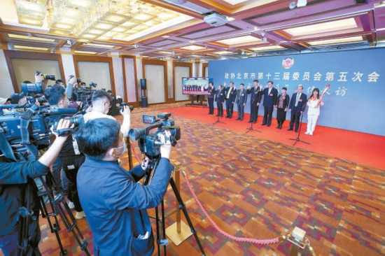 昨天,市政協十三屆五次會議舉辦“我是委員”集體采訪。8名委員在現場,1名委員通過視頻圍繞“冬奧有我”“科創中心建設”“履職為民”三個主題回答記者提問。 本報記者 方非攝