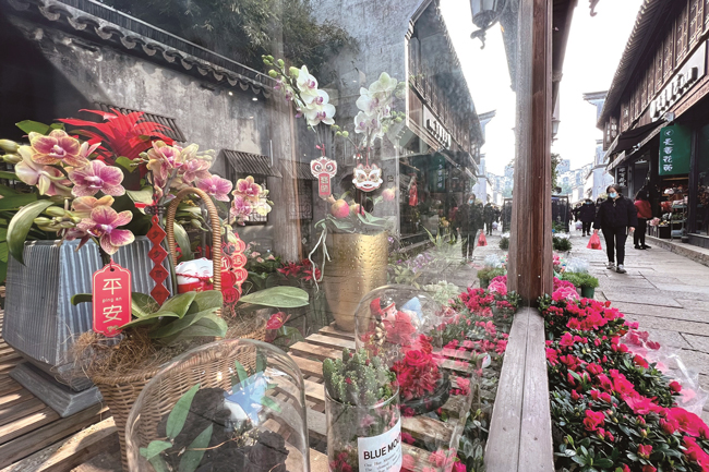 1月18日,在嘉興市區(qū)月河花鳥(niǎo)市場(chǎng),新春花卉五彩繽紛、琳瑯滿目,市民們漫步暖陽(yáng)中,購(gòu)買(mǎi)鮮花裝扮新春。(王振宇、王燁旻)