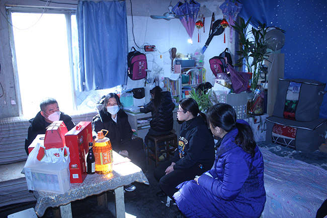 2022年1月24日,年關(guān)將至,氣溫驟降。濟南市中區(qū)人民法院少審?fù)サ姆ü賯冊诶罱ラL的帶領(lǐng)下,踩著厚厚的積雪,提著滿滿的春節(jié)年貨和生活、學習用品,來到轄區(qū)內(nèi)一間不足20平方米的簡易出租房內(nèi),看望了從大山深處來濟南生活的秦女士(化名)和她的三個女兒。 6年里的每個春節(jié)前夕,他們都會來看望這個因“案”結(jié)緣,心中時常牽掛的小姐妹家。