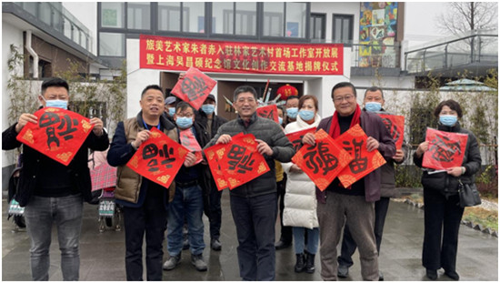 現場,朱者赤還即興提筆,墨躍紅紙,以倒序筆畫寫下福字,以此寄予“福到了”的新年祝福。作為入駐林家藝術村的第一批自由職業藝術家,朱者赤認為,鄉村的自然恬淡能為藝術家的創作帶來許多靈感,而藝術賦能也會對美麗鄉村建設會起到推進作用,他希望自己能在其中發揮作用,在不斷創作創新的同時,讓更多藝術美走進鄉村中去。