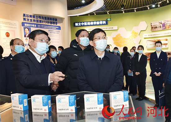 河北省稅務局黨委書記、局長程俊峰走訪全國人大代表、石家莊以嶺藥業股份有限公司總經理吳相君。 河北省稅務局供圖