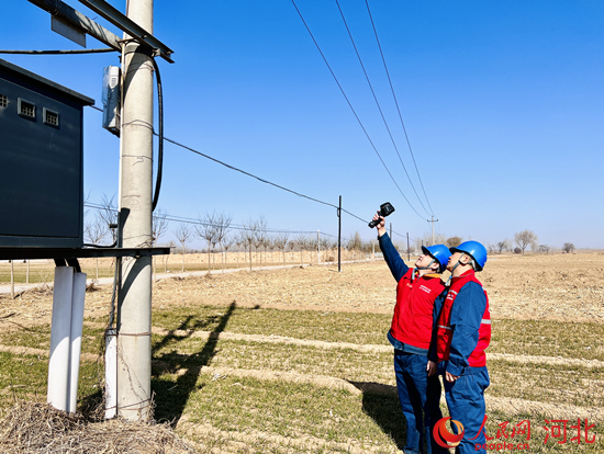 國網高陽縣供電公司共產黨員服務隊對10千伏西演農業分支線路及設備開展巡視測溫工作,保障春灌用電無后顧之憂。 王素杰攝