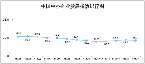 人民網北京3月10日電 (王仁宏)近日,中國中小企業協會發布2022年2月中國中小企業發展指數。數據顯示,受疫情和春節放假等因素影響,2022年2月中小企業發展指數(SMEDI)為89.2,按可比口徑環比下降0.2點,在連續三個月上升后略有下降,低于2021年同期水平。
