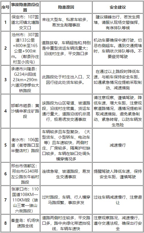 清明假期河北省8處交通事故多發路段