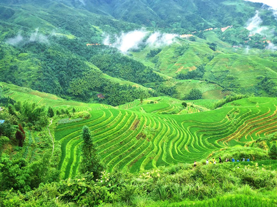 于是,遷西縣開始大力在山上做“文章”。在坡度25度以下的荒坡,沿等高線開挖1米深、2米寬的環山水平梯田,在“七山二水半分田、半分道路和莊園”的地貌上圍山造林,隨山就勢,環山而建,每條長達幾百米,且整個山體整體開發,因此這項工程被稱為“圍山轉”。