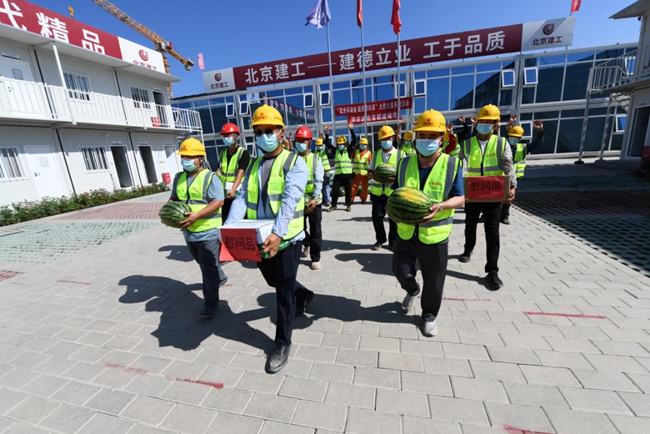 北京市已進入盛夏高溫時節,防暑降溫工作直接關系到勞動者身體健康和企業生產安全。7月7日,由北京市總工會主辦的“最美勞動者 微笑帶回家”系列活動暨清涼送給首都建設者活動,在北京建工路橋集團通州數據中心項目舉行,北京建工路橋集團黨委書記王曉輝代表公司黨委、工會對建設者進行慰問,向奮戰在施工一線建設者們送去清涼及防疫物資和真摯問候。