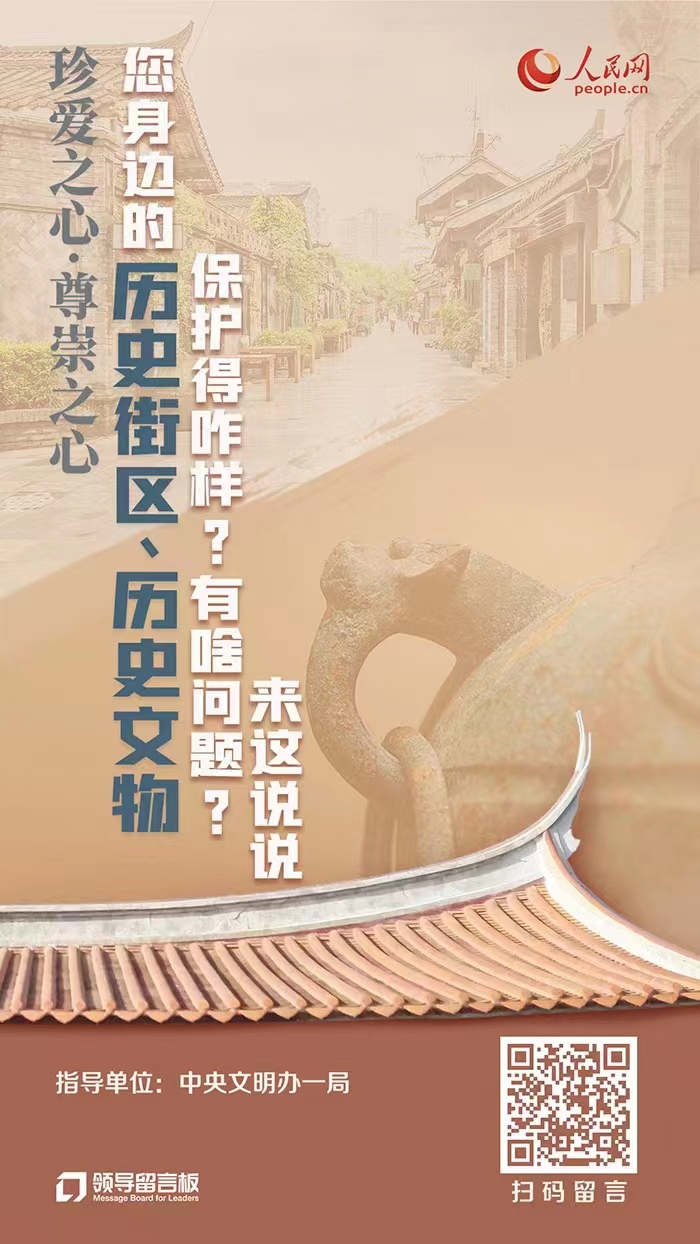 在你的家鄉,或你現在生活、工作的地方,是否有具備保護價值的歷史街區與文物古跡?對于這些歷史街區與文物古跡的保護、展示與利用,你又是否有哪些建議或創新想法?歡迎來“領導留言板”說說()。