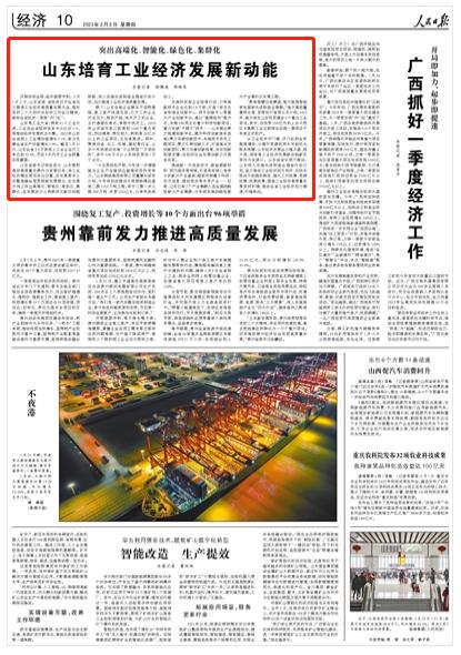 人民日報聚焦山東:培育工業經濟發展新動能,鎖定一季度“開門紅”!