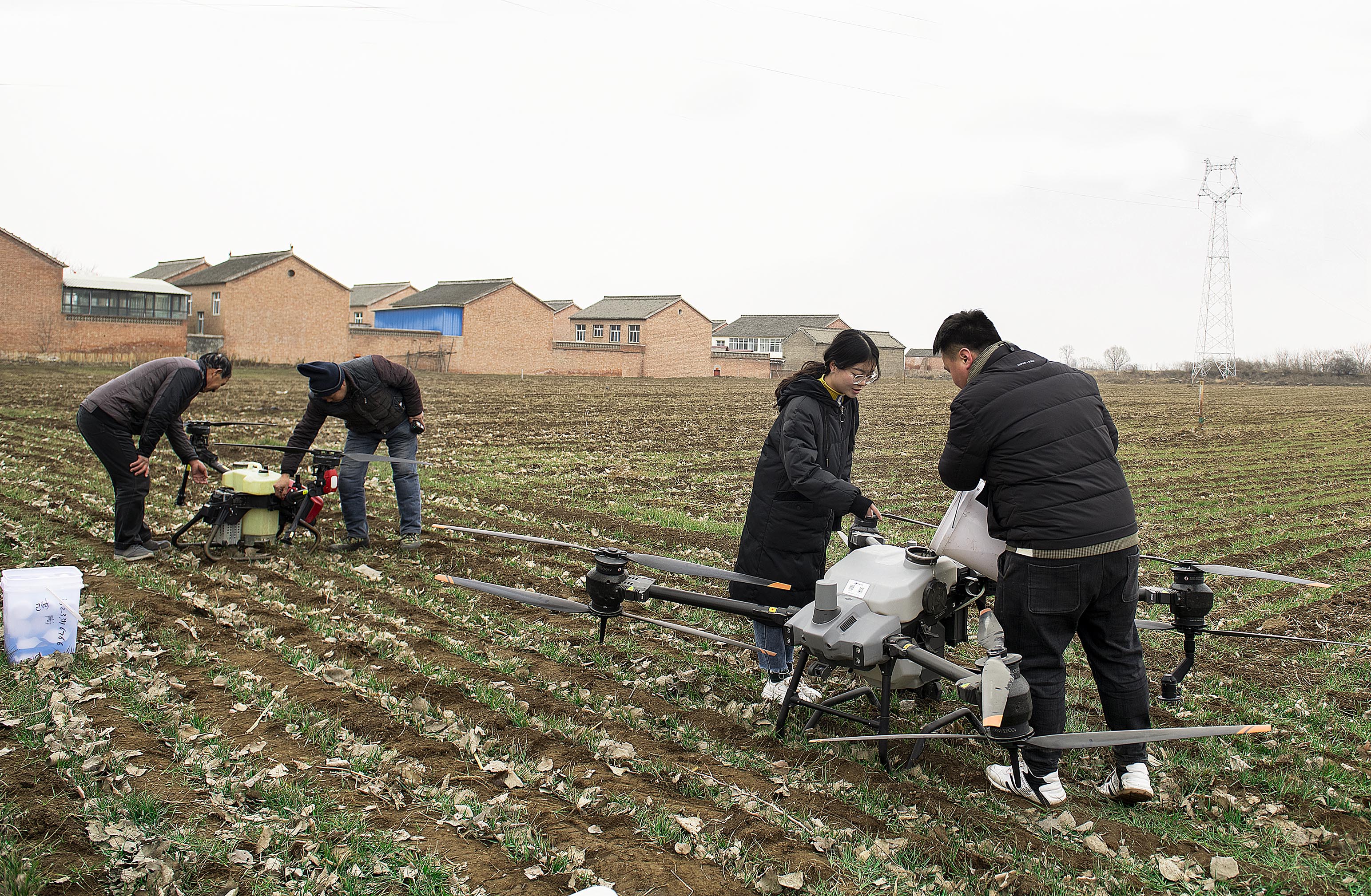 2月15日,在晉城市城區南村鎮,操作員正熟練地遙控農業專用無人機給麥田播撒肥料,大大提高了工作效率。