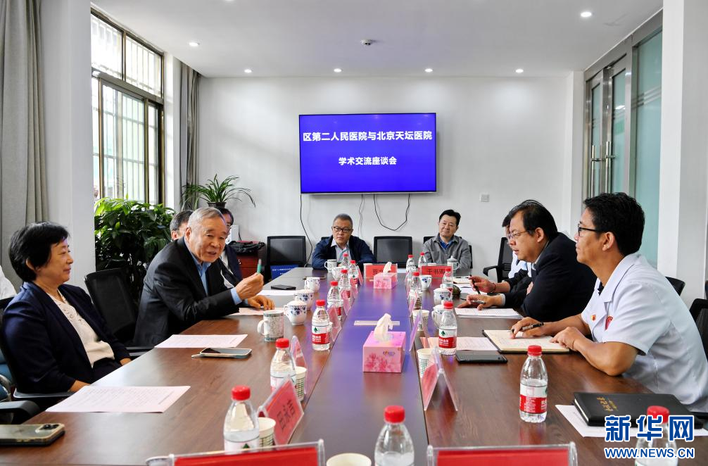 在西藏自治區第二人民醫院,趙繼宗院士(左二)與醫院醫療工作者交流(8月10日攝)。新華社記者 張汝鋒 攝