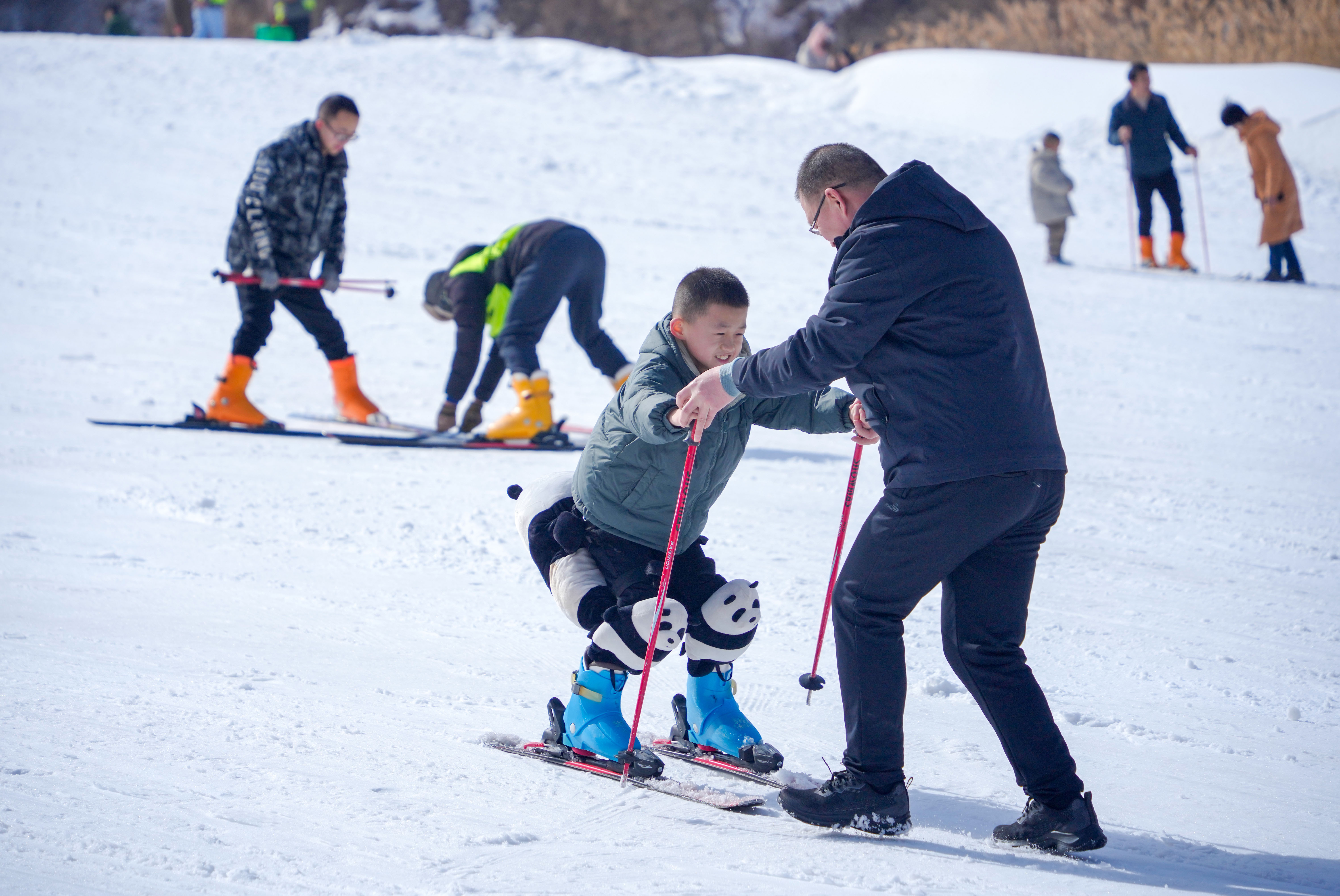 春節(jié)的‘紅’和冰雪的‘白’相遇,這是屬于中國(guó)人的獨(dú)特浪漫。2月10日(農(nóng)歷大年初一),在山西運(yùn)城,萬榮孤峰山滑雪場(chǎng)里熱鬧非凡。父母?jìng)兣惆楹⒆幼哌M(jìn)滑雪場(chǎng),體驗(yàn)滑雪、雪圈等項(xiàng)目。