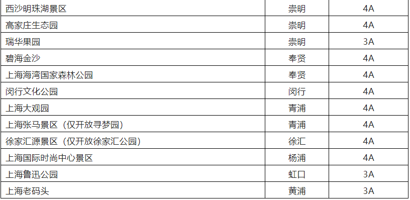 恢復開放的32家A級旅游景區(圖片來自上海市文旅局,央廣網發)
