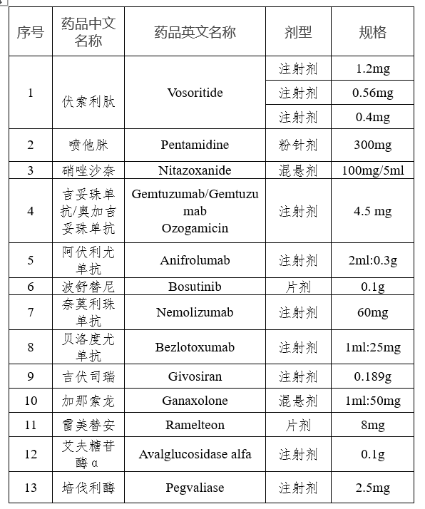 第四批清單主要有四個特點:一是突出臨床用藥需求。清單中絕大多數藥品國內暫無通用名上市,有助于填補國內用藥空白;二是貼近兒童用藥特點。多為口服溶液劑、鼻用散劑等低齡兒童適宜劑型,且同品種下規格更為豐富,能更好匹配不同年齡段的兒童用藥需求;三是關注罕見病患者群體。經多部門組織專家遴選論證,聽取臨床一線意見,遴選藥品中包括了部分罕見病用藥;四是兼顧企業研發積極性。清單遴選過程中,通過數據分析和專家論證等方式綜合評估了品種潛在的臨床應用前景和市場空間。