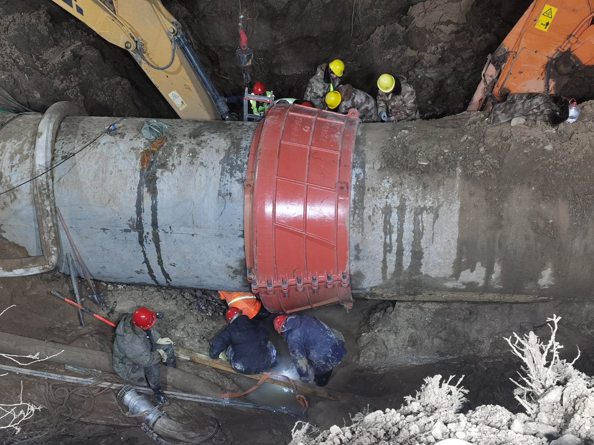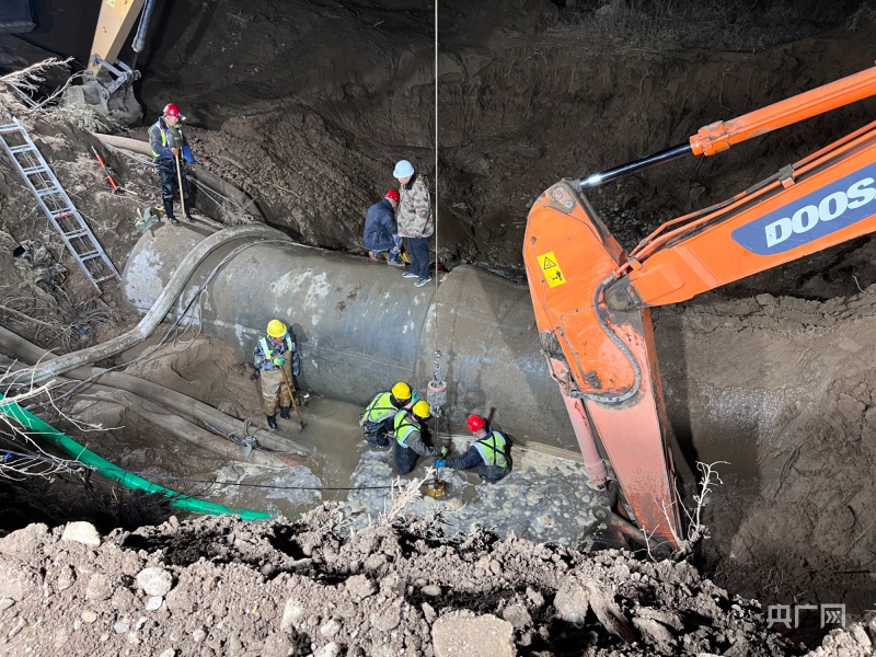 張文偉說:“因為這個管道是個兩米直徑的供水管線,是個主管線,它破裂以后水量特別大。管線是在耕地上,維修車輛是進不去的。維修首先得修筑施工通道,所有車輛人員靠近不了,然后關閘停水,走施工通道過去以后,進行原有管道抽排,管道里都是滿水,必須把水排干凈才能搶修,才能發現它是哪兒壞了,我們采取哪種方式來進行搶修。搶修方案有很多種,我們也提前都有預案。所以抽水時間很長,上游就有7萬多立方的水,抽排就是一個很大的難點。”