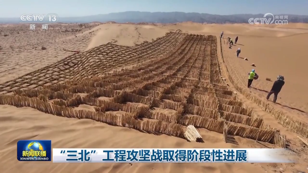 這幾天,趕在雨季到來前,“三北”工程攻堅戰項目區各地因地制宜,植樹種草,防沙治沙。地處騰格里沙漠東南緣的寧夏中衛,今年將完成荒漠化治理59.23萬畝,當地正在以每天800到1000畝的速度栽扎沙障,漫漫黃沙被分割鎖定在了數以萬計的方格中。