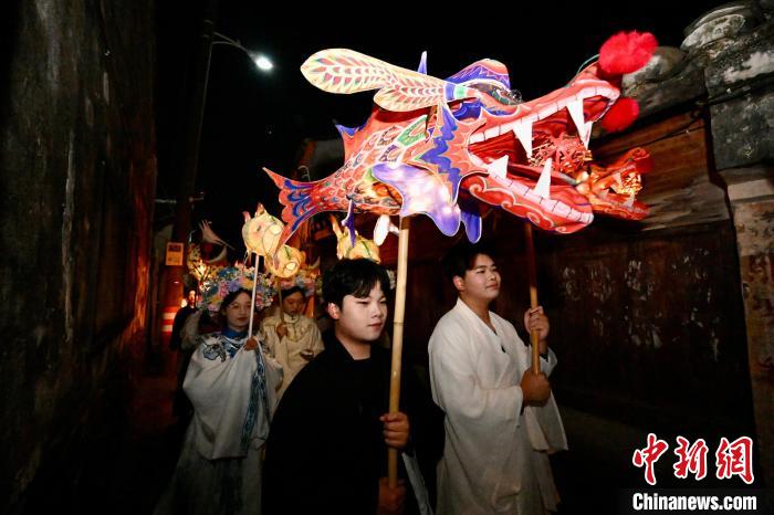 中新網寧波2月10日電(林波)蛇魚燈、鰲魚燈、燈籠魚燈、七彩鳊魚燈……2月9日晚,浙江省寧波市寧海縣強蛟鎮峽山村燈火璀璨,“寧海灣魚燈”民俗巡游拉開帷幕,村民和游客載歌載舞參與其中,匯成一片歡樂的海洋。