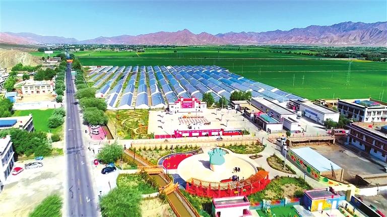由山東援藏打造的桑珠孜區青稞小鎮全景。