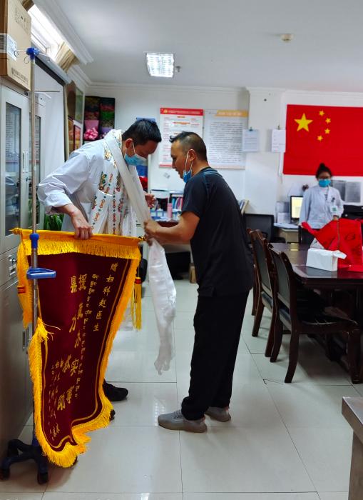 “孩子出院當天,其父母送來了哈達和錦旗。孩子的父親一度流下激動的淚水。”2019年至2022年,孫樹學參與了北京市醫療人才組團式援藏工作,在拉薩市人民醫院工作三年。憶及援藏時期,這次組織多學科搶救仍令他印象深刻。
