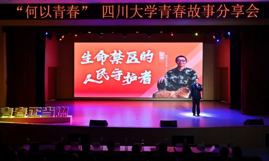 圖為楊聰正在四川大學青春故事分享會上演講。今年5月,他獲評四川大學2024年度“青年五四獎章” 圖片來源:四川大學微信公眾號