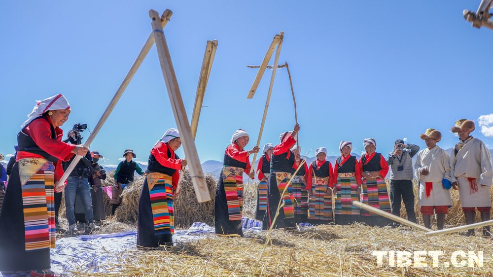 資料圖:西藏拉薩林周縣強嘎鎮典沖村村民展示傳統青稞脫粒 攝影:賈華加