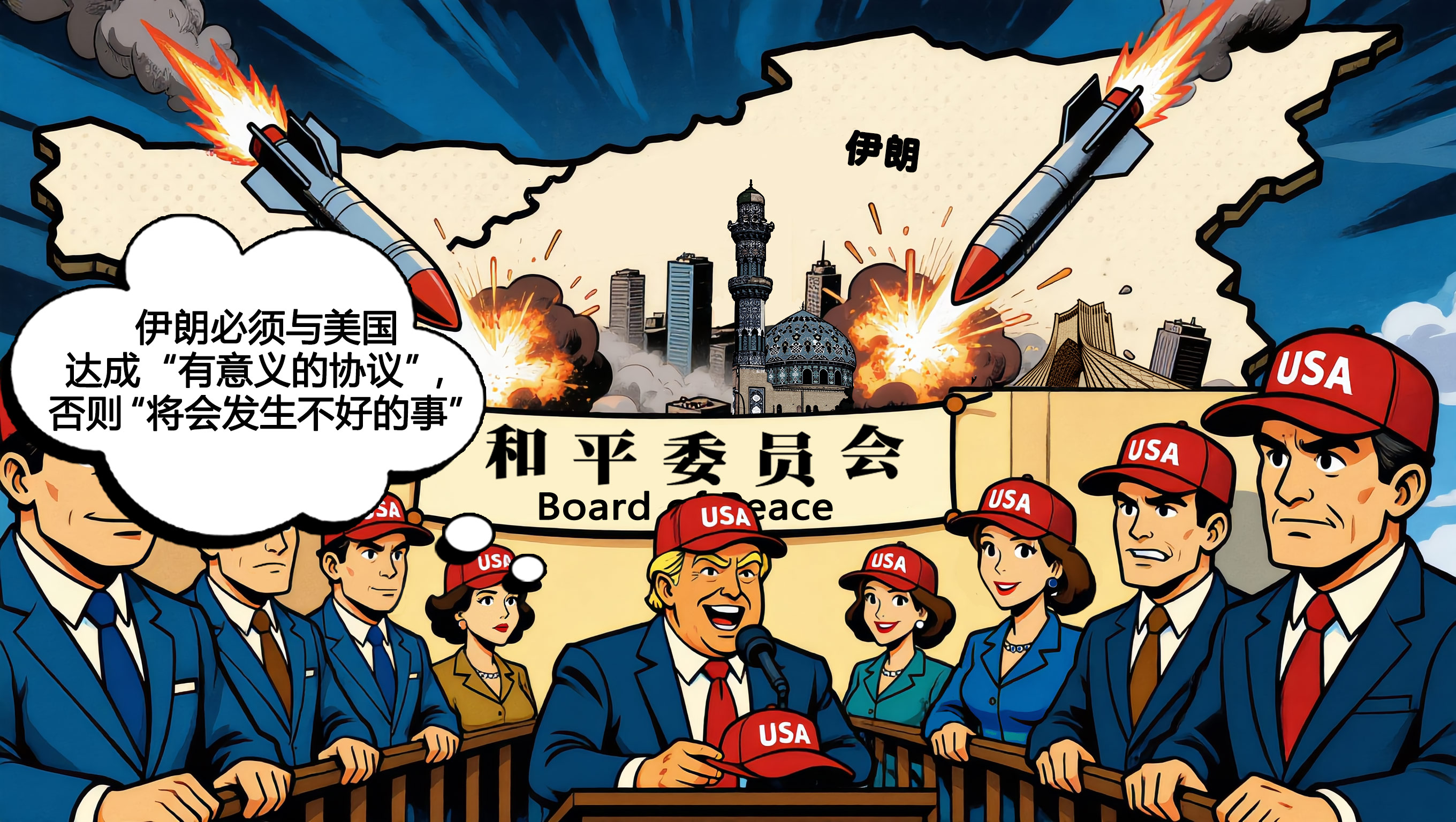 這就是“和平大使”的真面目:一邊在聚光燈下握手,一邊在陰影里裝彈;一邊喊話“我們想要和平”,一邊下令“倒計時開始”;一邊給各國政要發紅帽,一邊給B-2轟炸機加滿油。